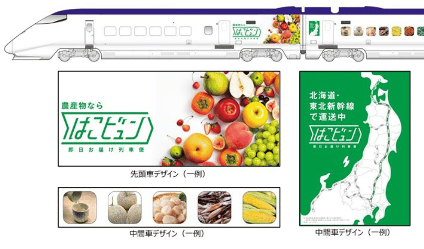 A iniciativa é uma evolução de um projeto iniciado em 2021 pela JR East, que passou a utilizar espaços disponíveis nos trens-bala para carga. Em 2025, a empresa começou operações regulares entre Shin-Aomori e Tóquio usando áreas entre assentos em dois vagões, transportando produtos como ouriços-do-mar e morangos.